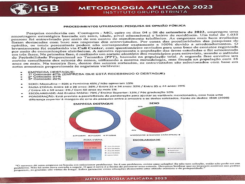 A empresa IGB Pesquisas, especializada na elaboração de pesquisas de opinião pública, realizou recentemente um trabalho em Contagem/MG e levantou empresas destaques em qualidade do serviço prestado e no atendimento realizado aos clientes. Nossa Clínica foi novamente eleita a melhor da Cidade. O ano de 2023 tem sido um ano de muito trabalho e dedicação e esta premiação nos enche de esperanças e coragem para a continuidade do projeto. Dr. Fabrício Gomes agradece a toda a equipe de funcionários, parceiros e colaboradores que se unem ao ideal e prestam serviços de qualidade à população. A cidade de Contagem só tem a ganhar!